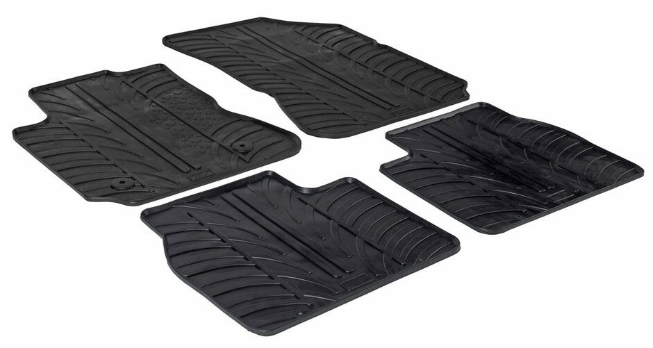 Kvalitetsanpassade gummimattor från TravAll med 1 cm kant, där fram- och bakmattorna är anpassade till den specifika bilmodellen. Mattorna är tillverkade i tungt gummimaterial så de ligger kvar och är mycket slitstarka, producerade i en svart färg. Äkta gummi som säkerställer optimal halksäkerhet. De bilar som är utrustade med mattlås levereras gummimattorna med de originala mattlåsen.
