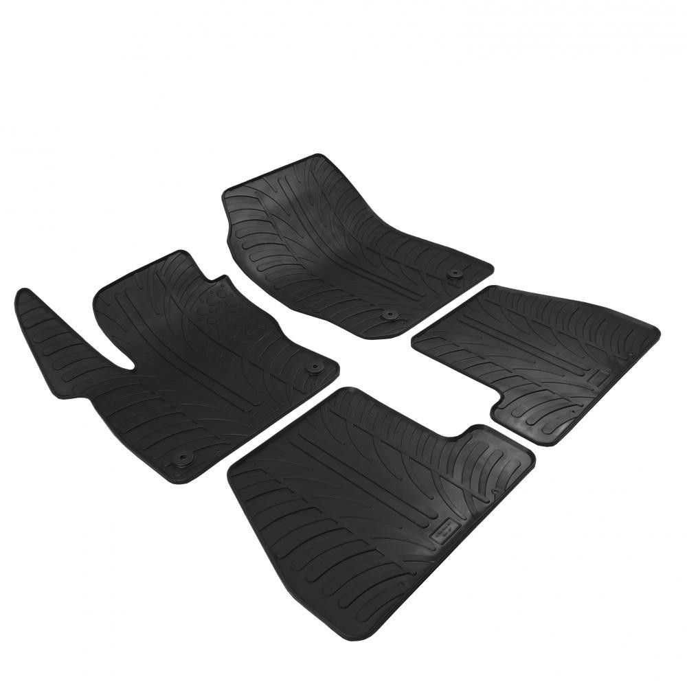Kvalitetsanpassade gummimattor med 1 cm kant, där fram- och bakmattorna är anpassade till den enskilda bilmodellen. Mattorna är tillverkade i tungt gummimaterial så de ligger kvar och är mycket slitstarka, producerade i en svart färg. Äkta gummi som säkerställer optimal halksäkerhet. De bilar som är utrustade med mattlås levereras gummimattorna med de originala mattlåsen.