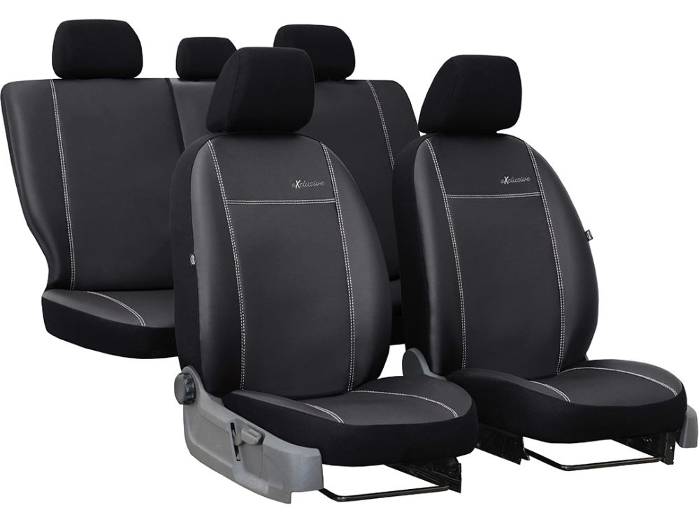 Sätesskyddet Exclusive Konstläder är tillverkat av konstläder av hög kvalitet med en naturlig läderstruktur. Detta material är hållbart och vattentätt. Skyddet har ökad motståndskraft mot slitage. Det finns ett "Exclusive"-logo påsytt på framsätena.