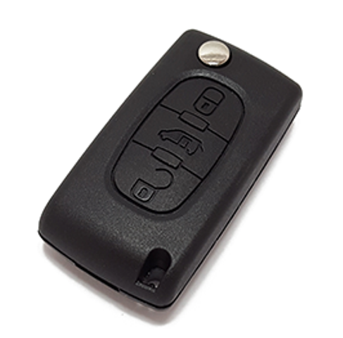 Peugeot 3 knappars fjärrkontrollskal/sändarskal. Levereras med batterihållare, som sitter nere i lådan. Nyckelspets, elektronikprint och startspärr transponder flyttas över i det nya fjärrkontrollskalet.