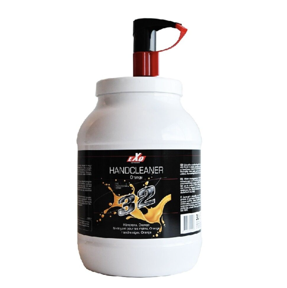 EXO 32 Hand Cleaner Orange är en kraftfull, professionell handrengöring med pump, utformad för effektivt att avlägsna olja, fett, greas, smuts och andra svåra föroreningar från händerna perfekt för verkstäder, industri och mekaniska miljöer. Denna stora 3-liters pumpbehållare säkerställer att du har gott om handrengöring för långvarig användning, vilket gör produkten både ekonomisk och praktisk i den dagliga driften. Handrengöringen är kornig, så den hjälper till att lossa och lösa upp fastsittande smuts snabbt och effektivt utan att torka ut huden. Den är utvecklad för att vara skonsam mot huden, samtidigt som den arbetar hårt mot envis smuts.