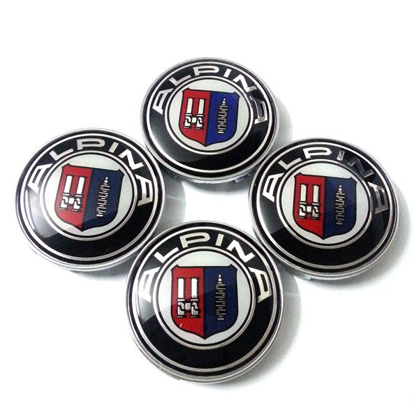 Alpina centrumkapslar med svart bakgrund. Komplett centrumkapsel som passar i de flesta fälgar, kapslarna monteras från framsidan av fälgen och klickas bara i, enkla att montera. Storlek 55/60 mm. förpackad med 4 st.