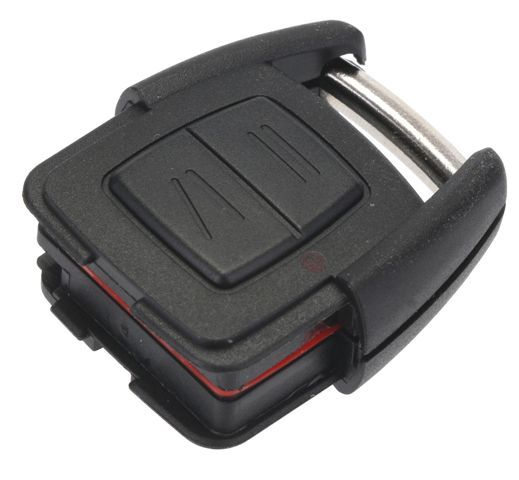 Opel 2knappsfjärrkontrollskal/sändarskal. Nyckelspets, elektronikkort och startspärrtransponder flyttas över till det nya fjärrkontrollskalet.