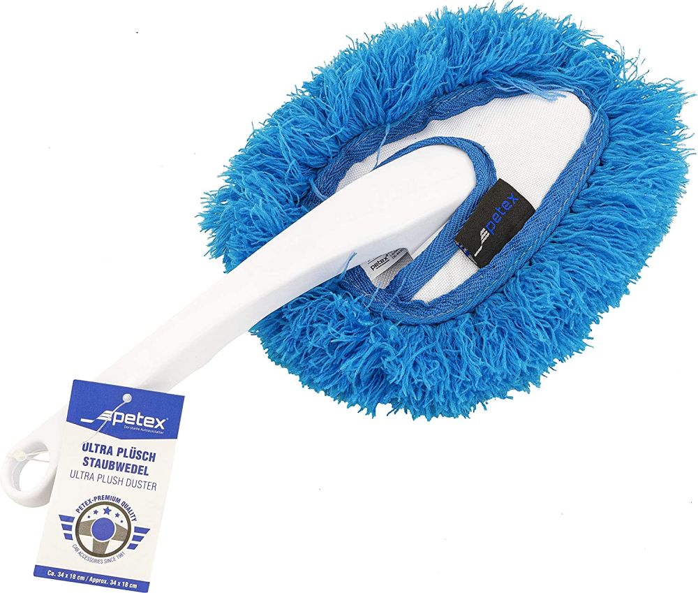 Effektiv dammvippa för rengöring av utställningsbilen eller hemmet, tillverkad av mikrofiber som inte orsakar skador på bilens interiör eller i hemmet. Handtaget är ergonomiskt utformat vilket gör borsten bekväm och ligger perfekt i handen. Färgen på dammvippan är vit och blå och levereras i 1 st.